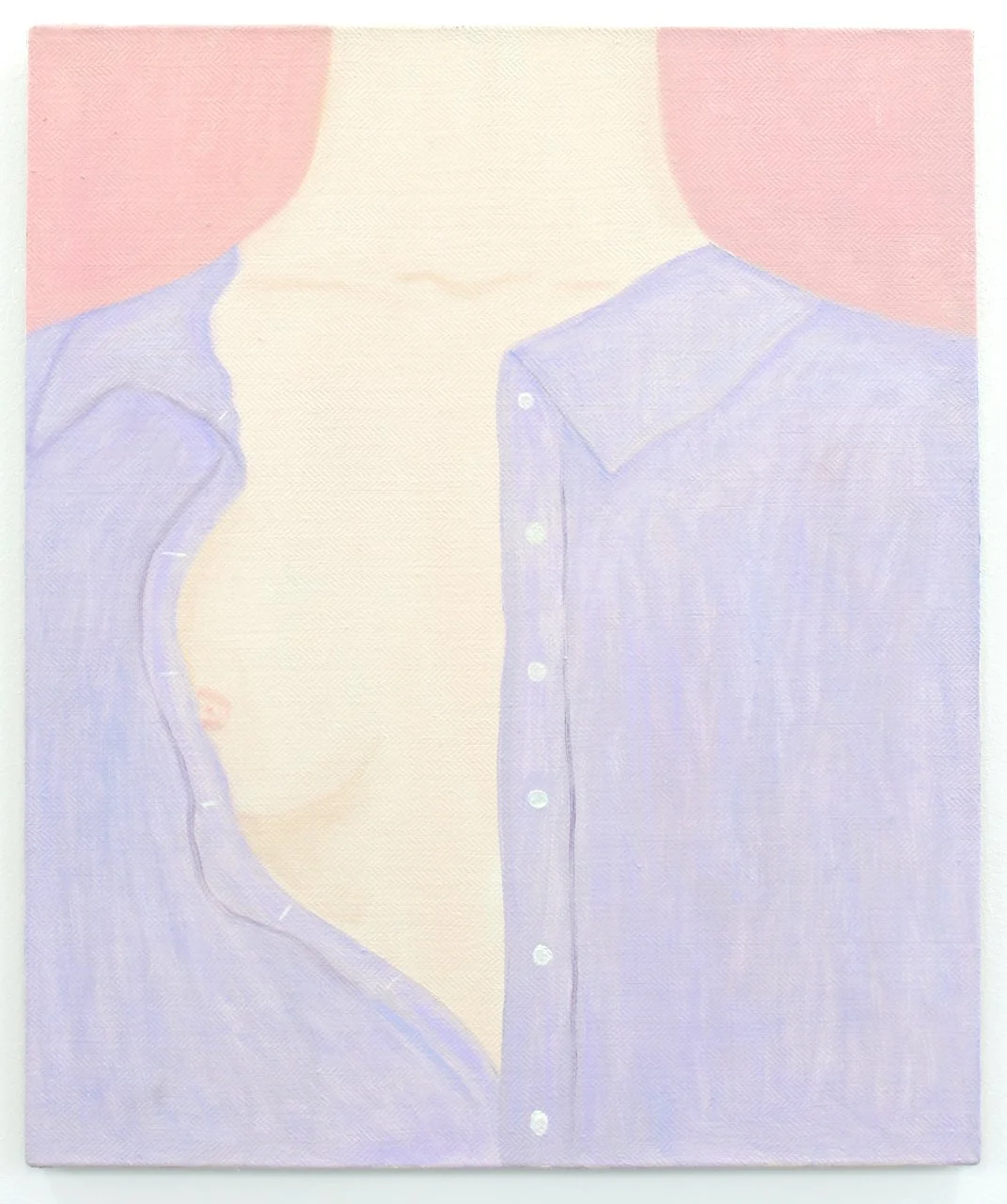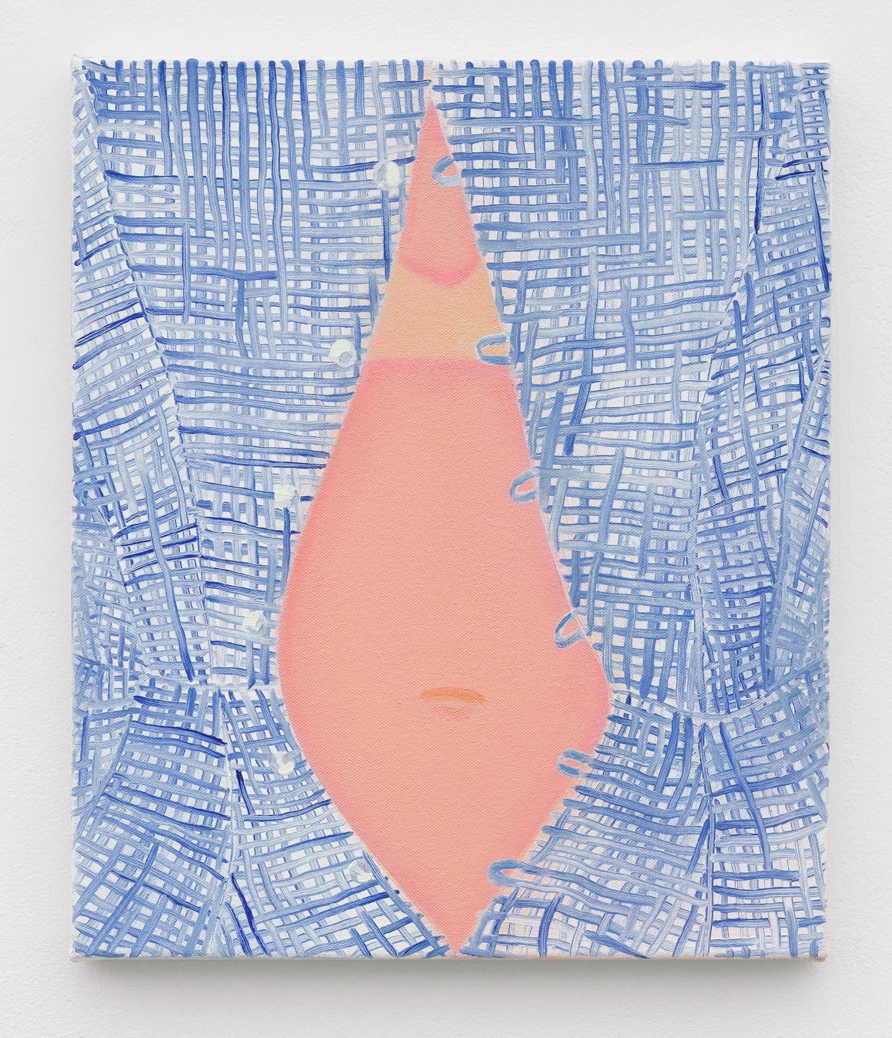 With a pink eye open, 2018, oil on herringbone linen, 61 x 51 cm